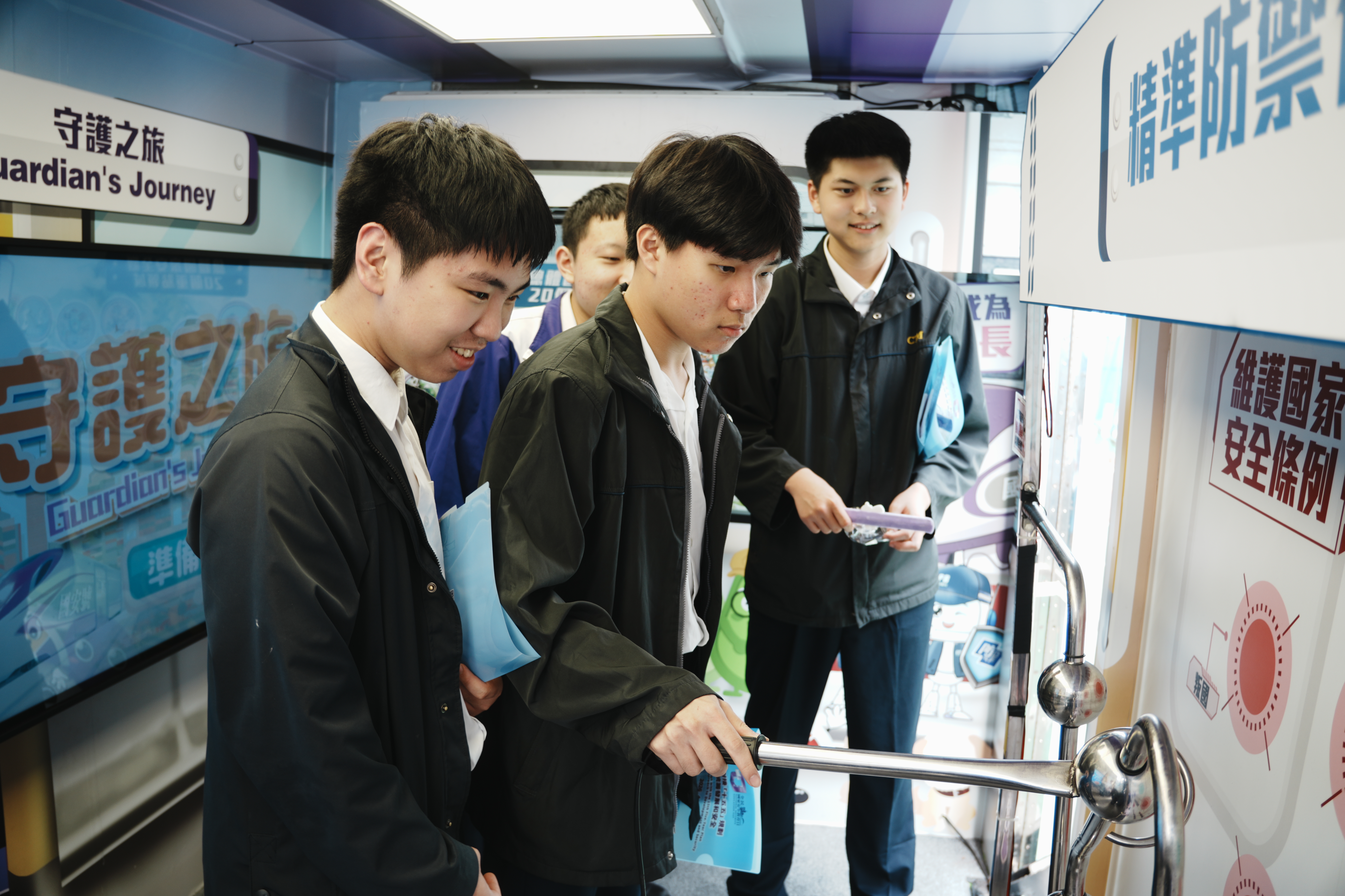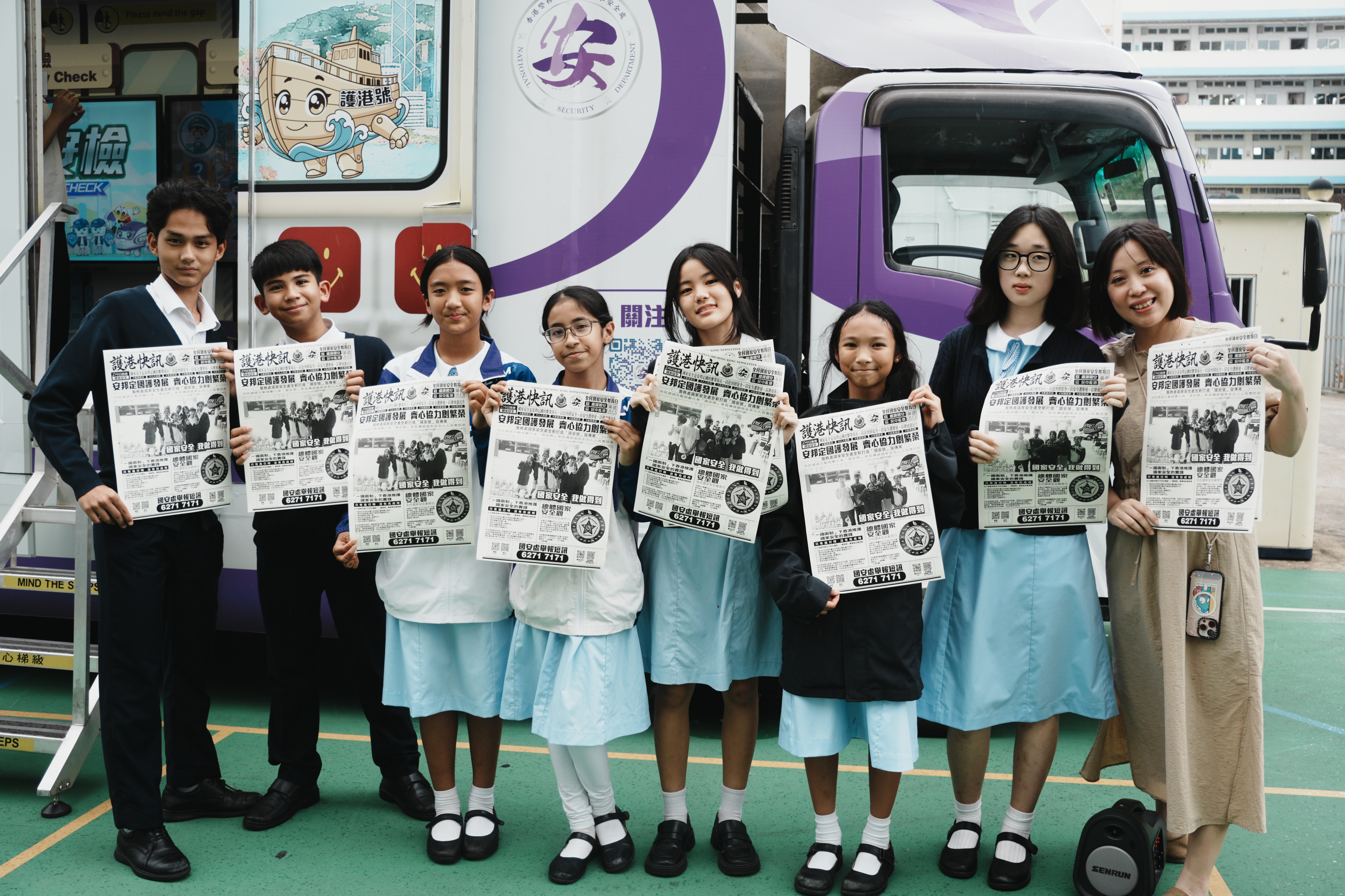 4月28日,屯門警區安排了一部「國家安全教育宣傳車」駛入本校操場,全日停泊,為全校師生帶來一場別開生面的國安教育活動!現場更設有兩個互動遊戲攤位及一部「國安照相機」,讓同學們在輕鬆愉快的氛圍中學習國家安全知識,拍照留念,傳遞「維護國家安全,人人有責」的重要訊息。