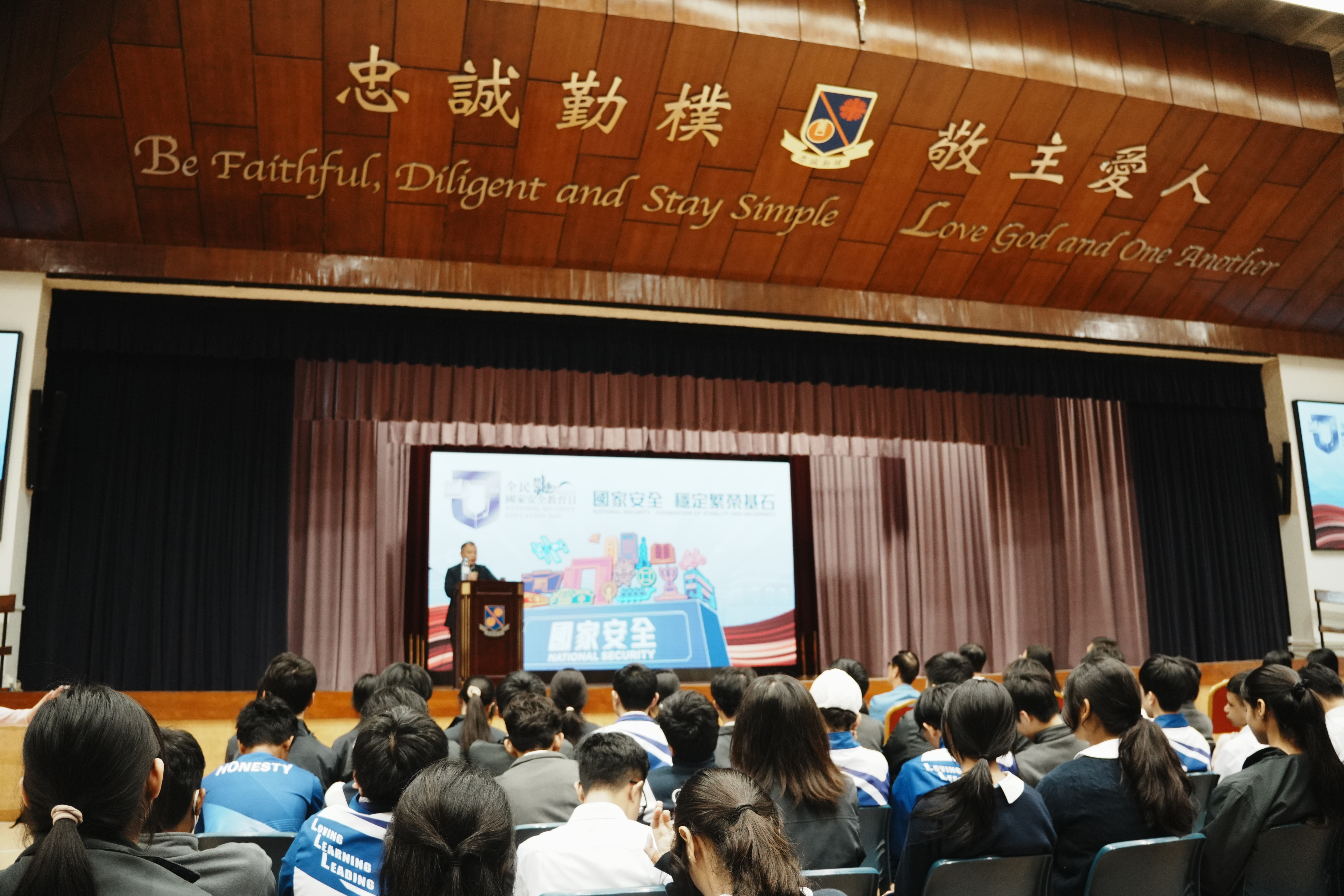 屯門警處警長及區議員親臨校園,與同學們近距離交流,分享國家安全的核心概念與現實意義。警長更登上講台,深入淺出地講解如何防範潛在安全風險,並與同學進行互動問答,派發小禮物,鼓勵大家共同守護國家安全。
