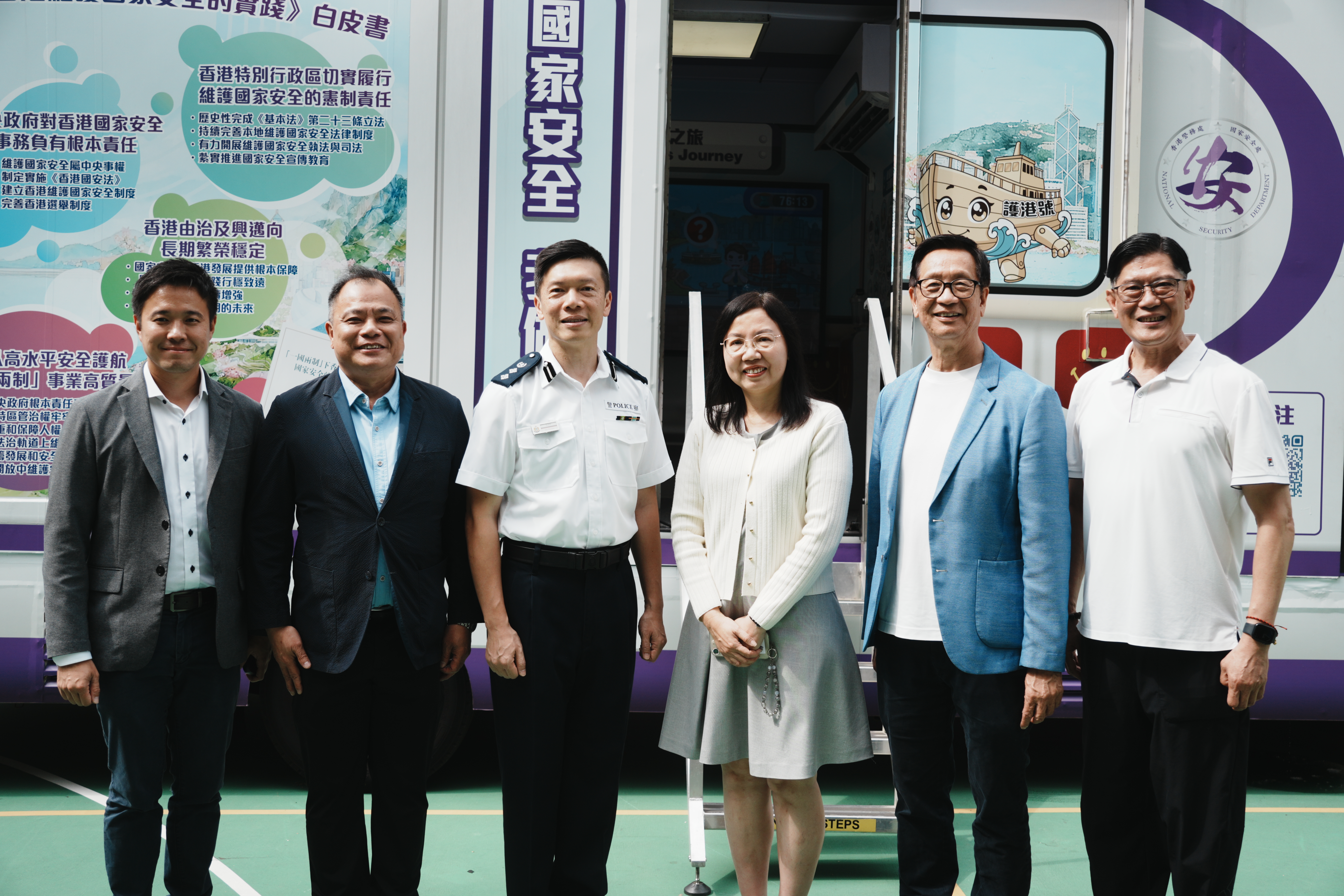 4月28日,屯門警區安排了一部「國家安全教育宣傳車」駛入本校操場,全日停泊,為全校師生帶來一場別開生面的國安教育活動!現場更設有兩個互動遊戲攤位及一部「國安照相機」,讓同學們在輕鬆愉快的氛圍中學習國家安全知識,拍照留念,傳遞「維護國家安全,人人有責」的重要訊息。