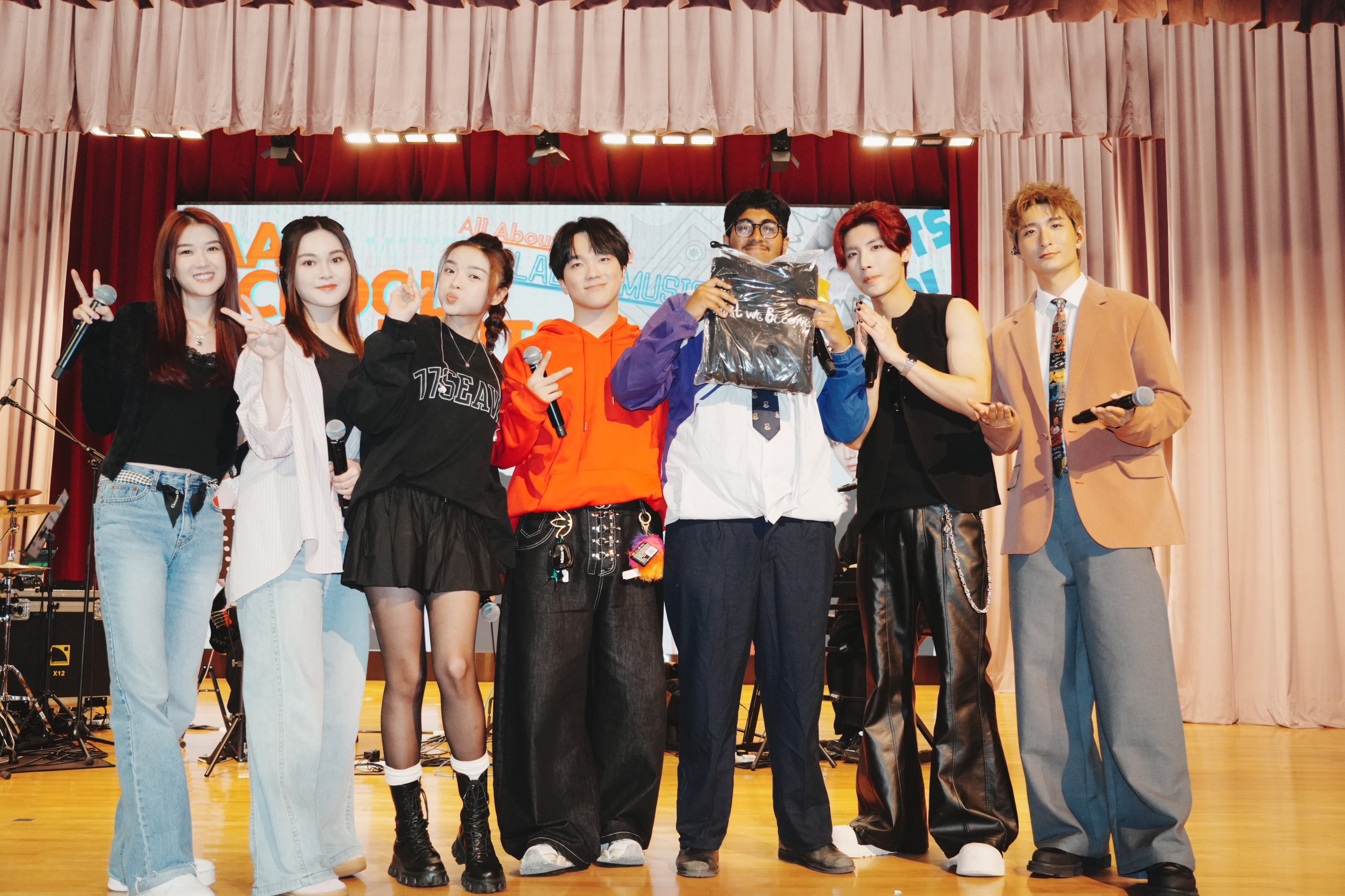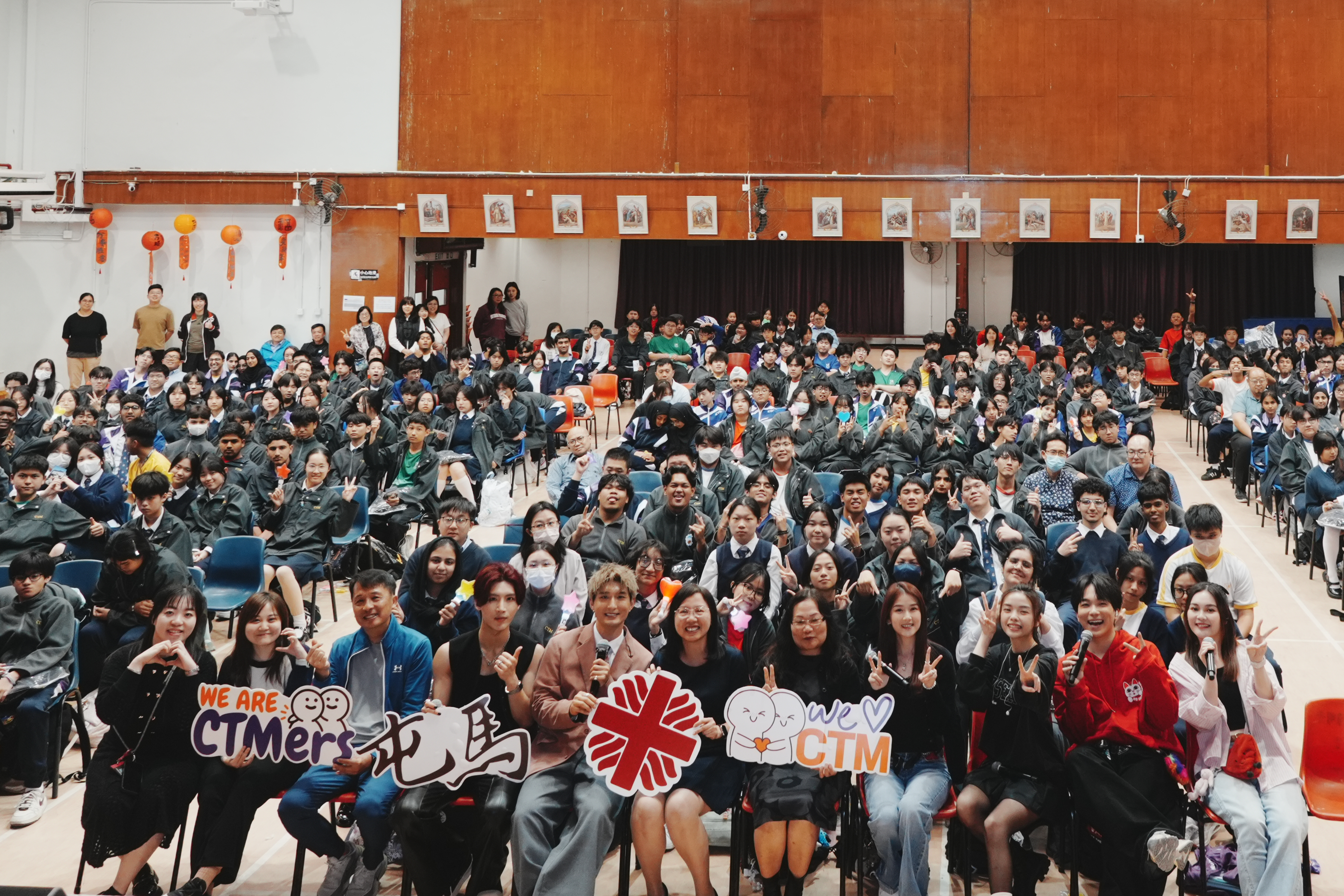 當日聲夢學員們在台上勁歌熱舞,演繹多首激動人心的歌曲,瞬間點燃全場氣氛!他們不只帶來精彩演出,更走到台下與同學們近距離互動,親切擊掌、聊天合影,令全場尖叫聲不斷。最驚喜的是,屯馬學生更獲邀上台,與《聲夢》學員一同合唱,展現自信與才華,贏得全場雷動掌聲!